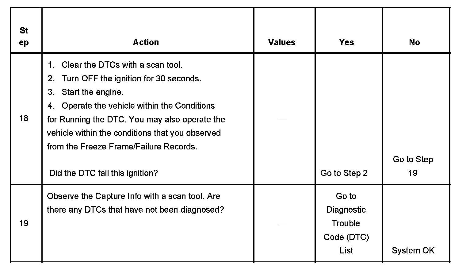 - A current DTC, Last Test Failed, clears when the diagnostic runs and passes.