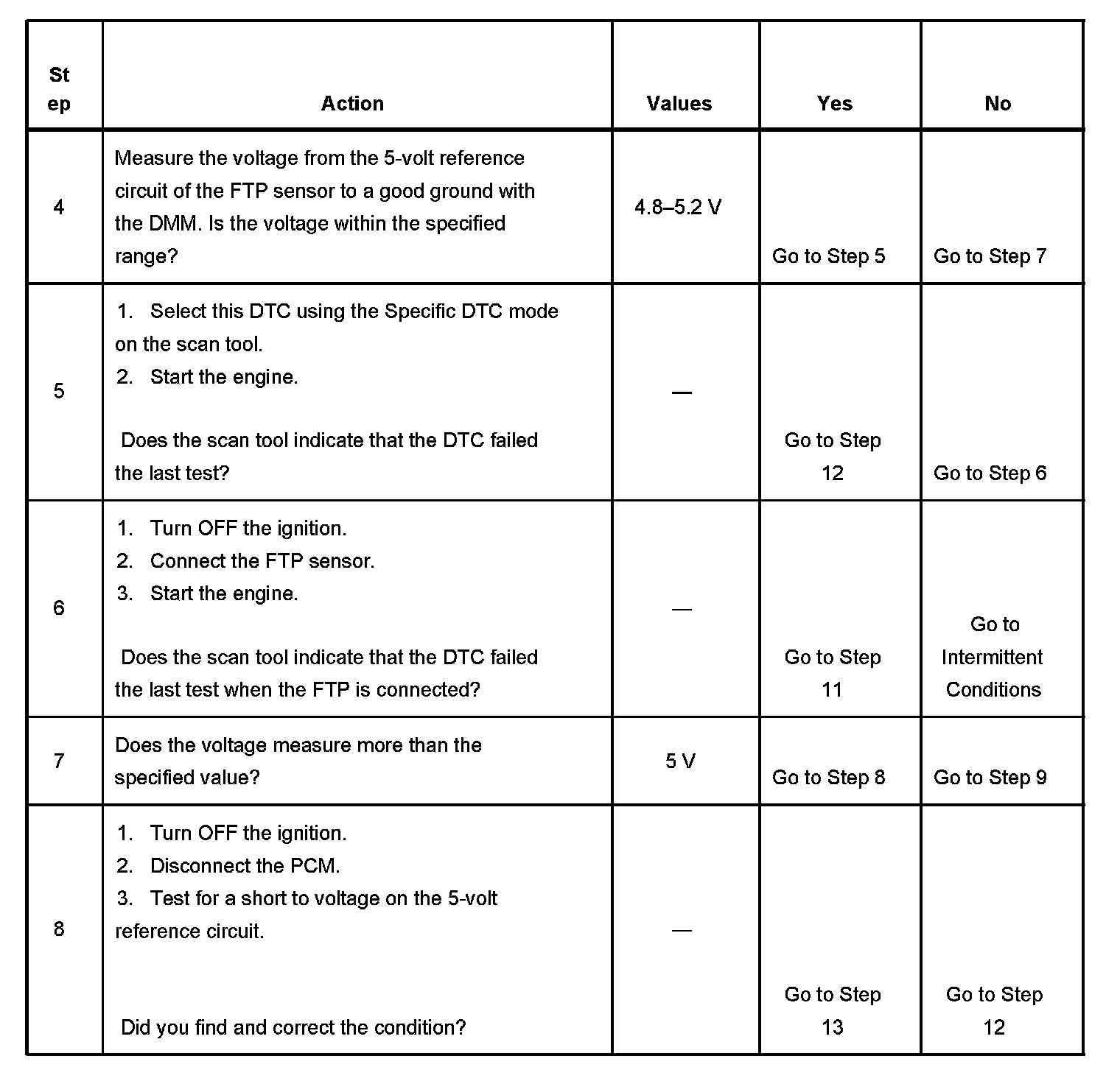 - The PCM detects a voltage out of tolerance condition on the 5-volt reference circuit.