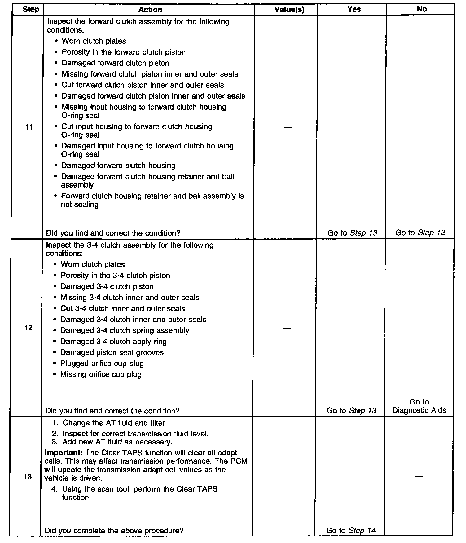 If the TCC slip speed is 130-800 RPM for 7 seconds, then the PCM will command maximum line pressure and freeze shift adapts from being updated.