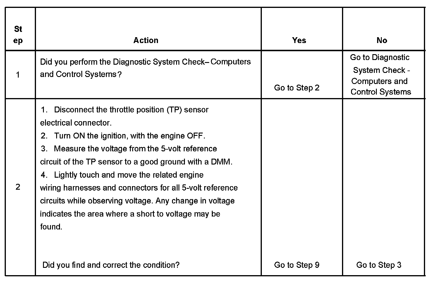 The number below refers to the step number on the diagnostic table.
