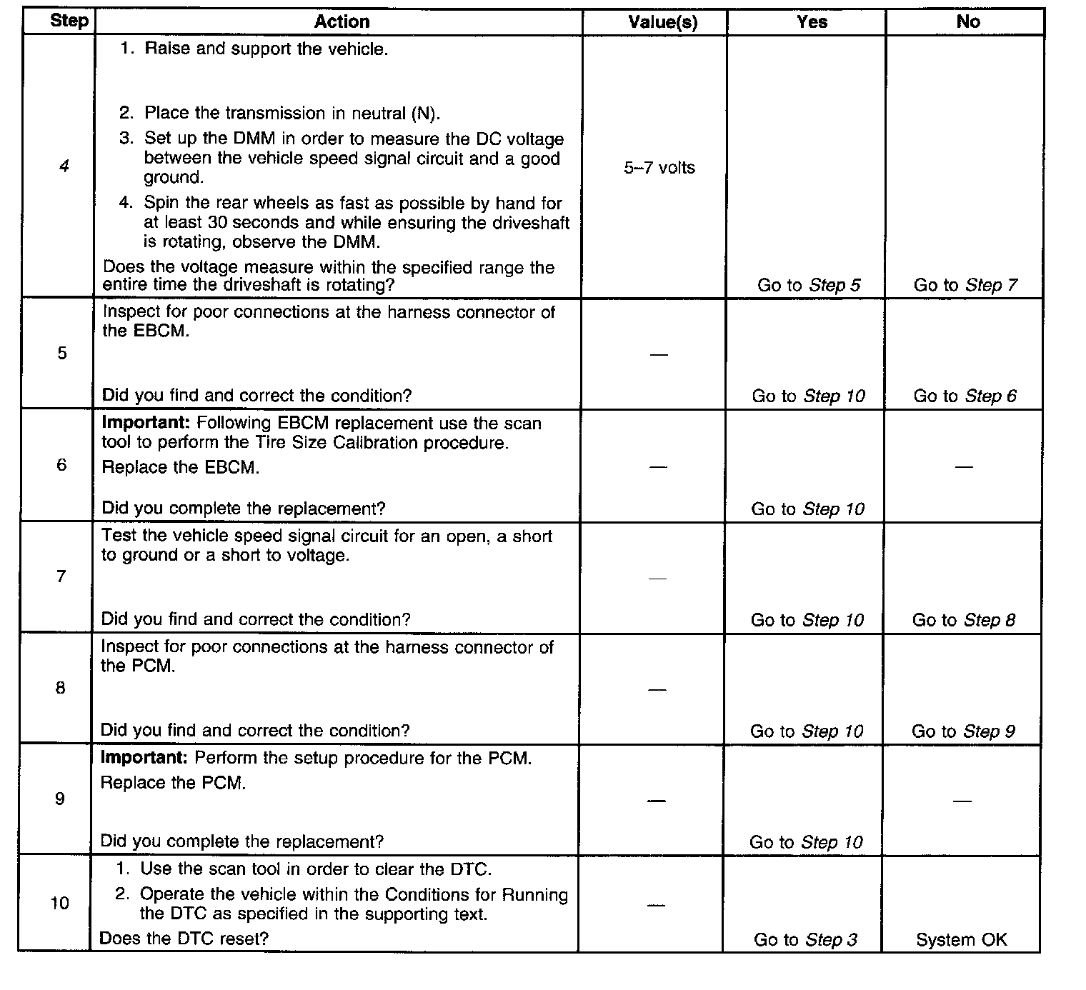 4. This step tests for a missing or erratic vehicle speed signal from the PCM. An assistant may be required in order to Perform this test.
