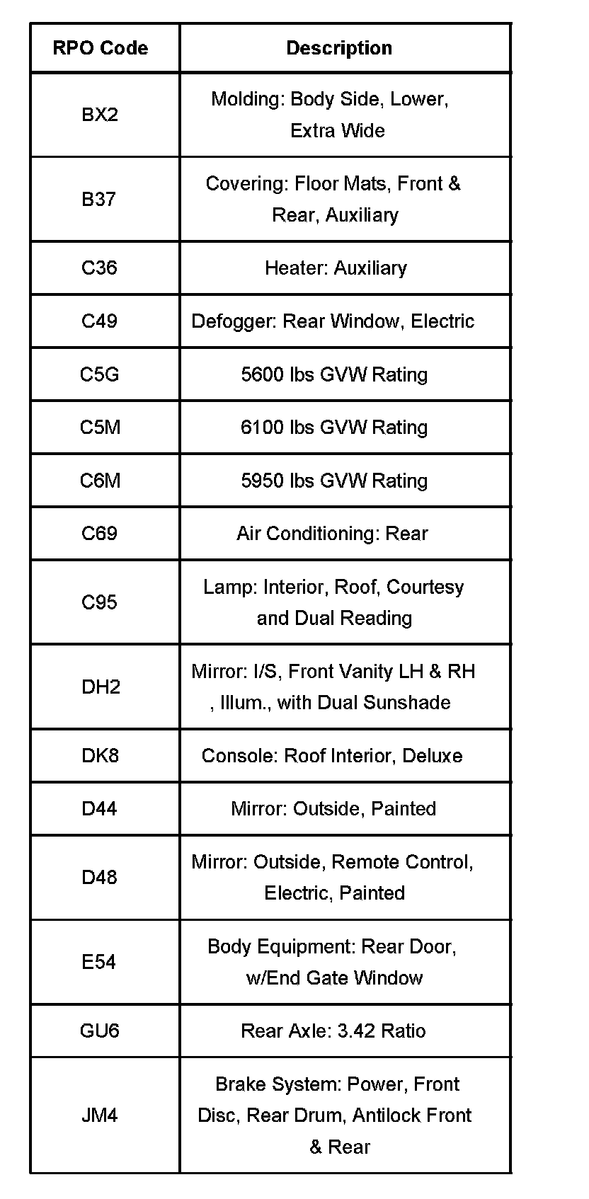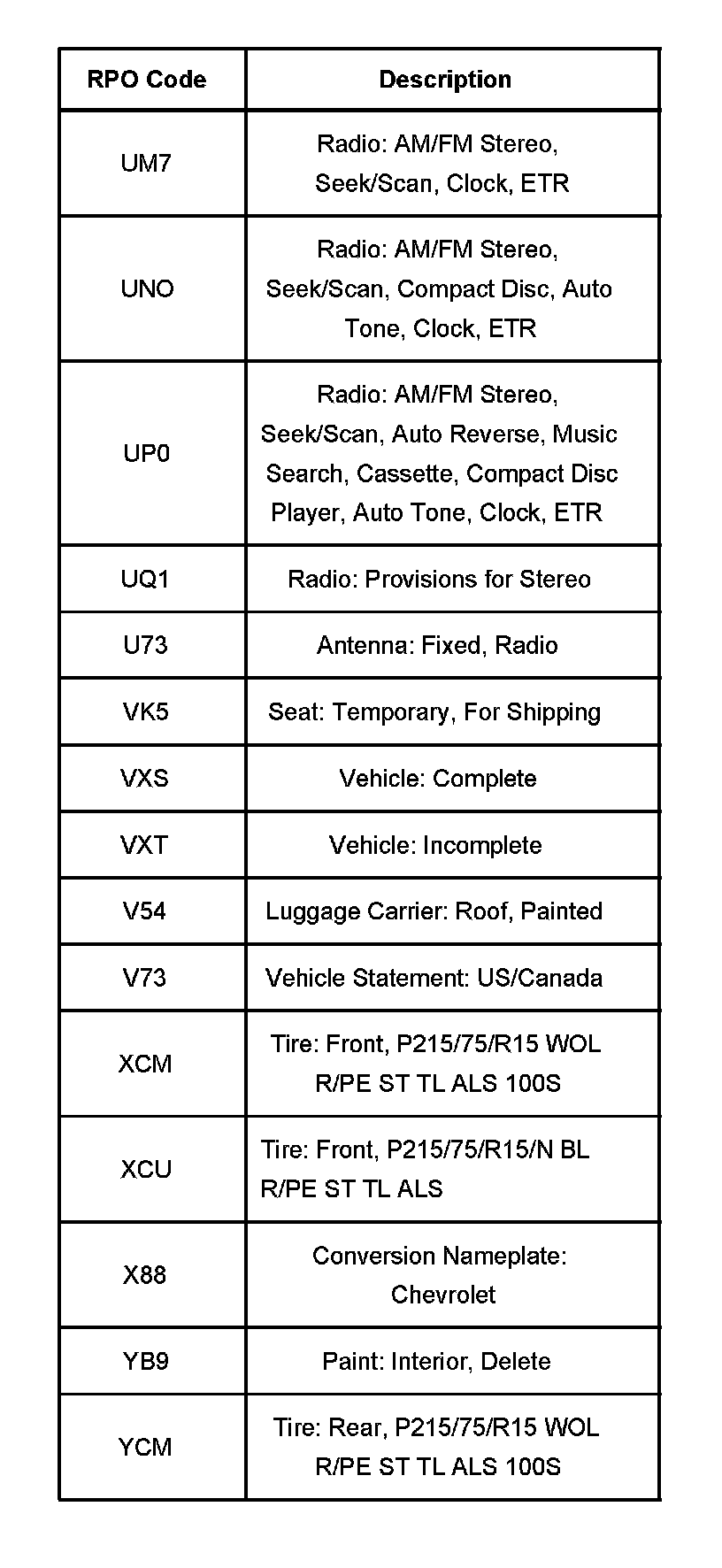 RPO Codes