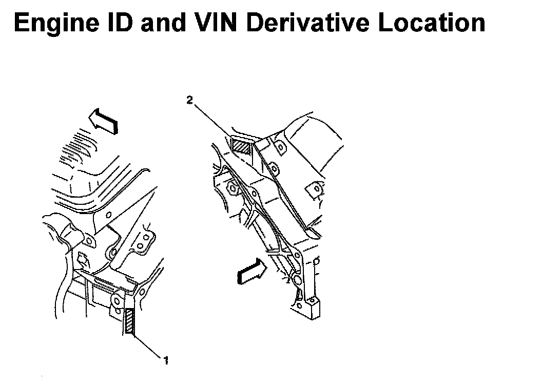 - The Vehicle Identification Number (VIN) Derivative is located on the left side rear of the engine block (1) or on the right side rear (2) and typically is a nine digit number stamped or laser etched onto the engine at the vehicle assembly plant.