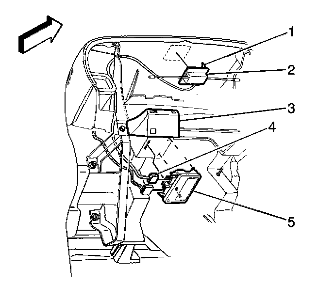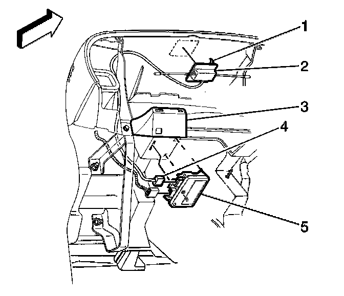 3. Disconnect the remote keyless entry electrical connector (4) from the receiver (5).