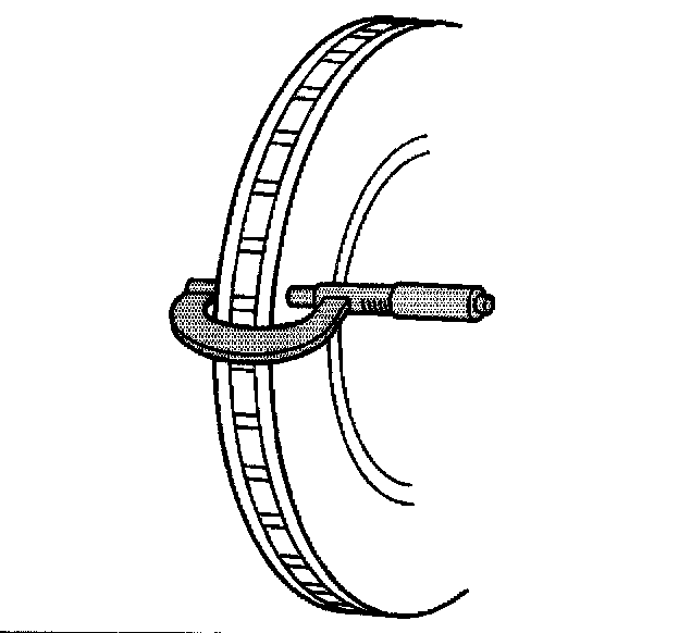 Ensure that the measurements are only taken within the friction surfaces and that the micrometer is positioned the same distance from the outer edge of the rotor, about 13 mm (1/2 inch), for each measurement.
