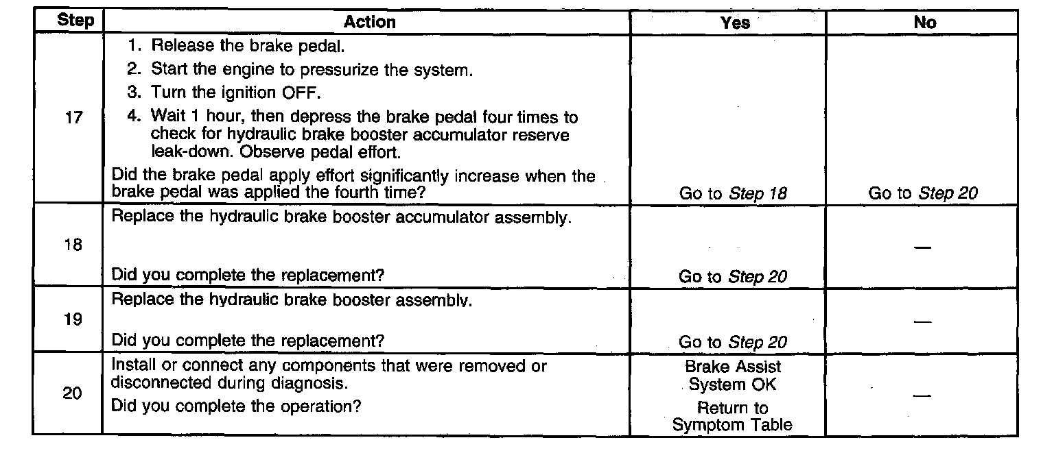 Brake Assisted System (Hydraulic Assist) / Steps 17 Through 20: