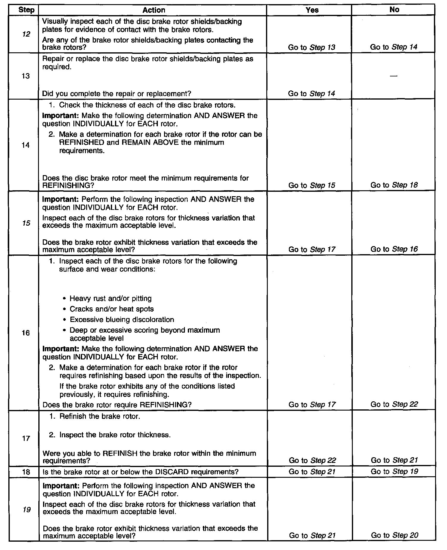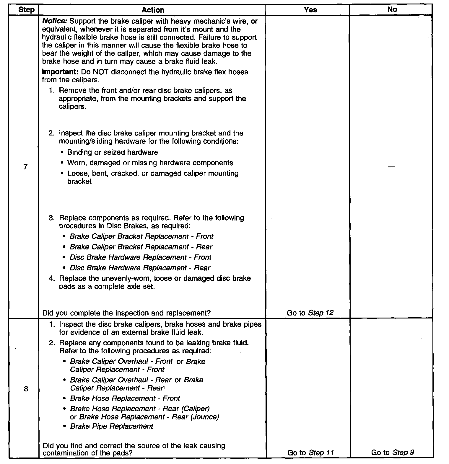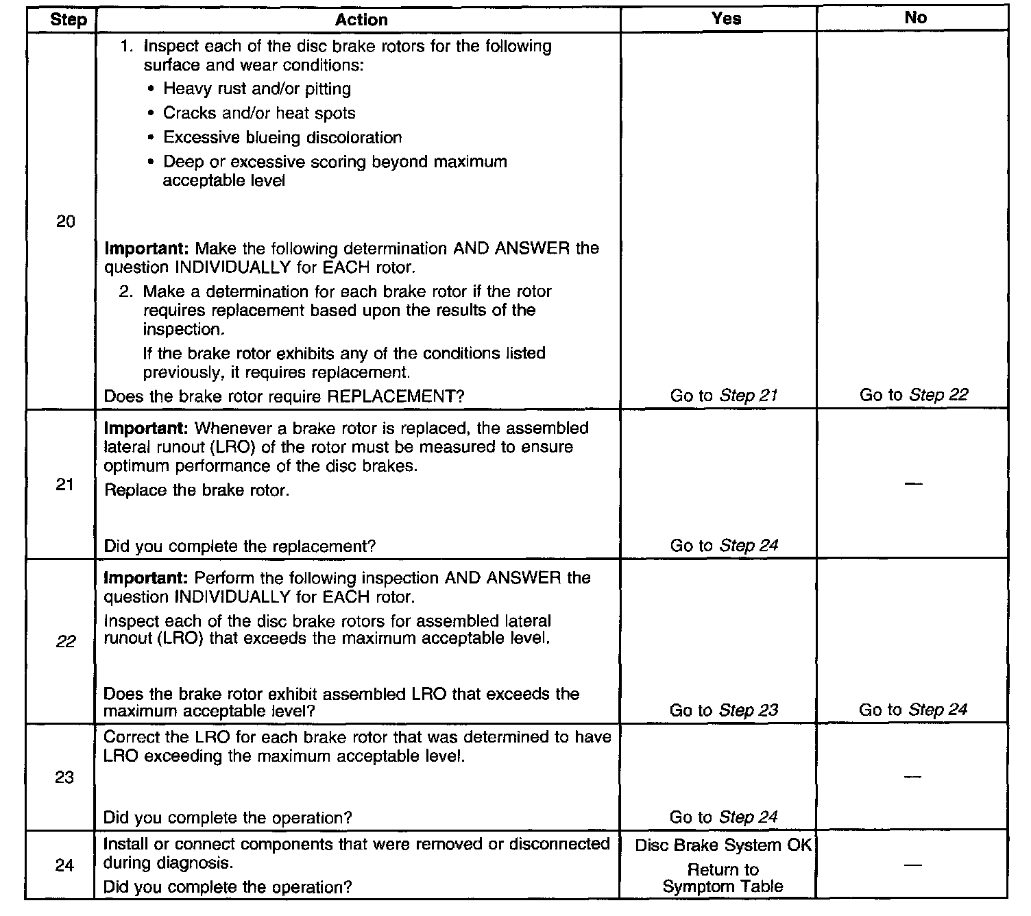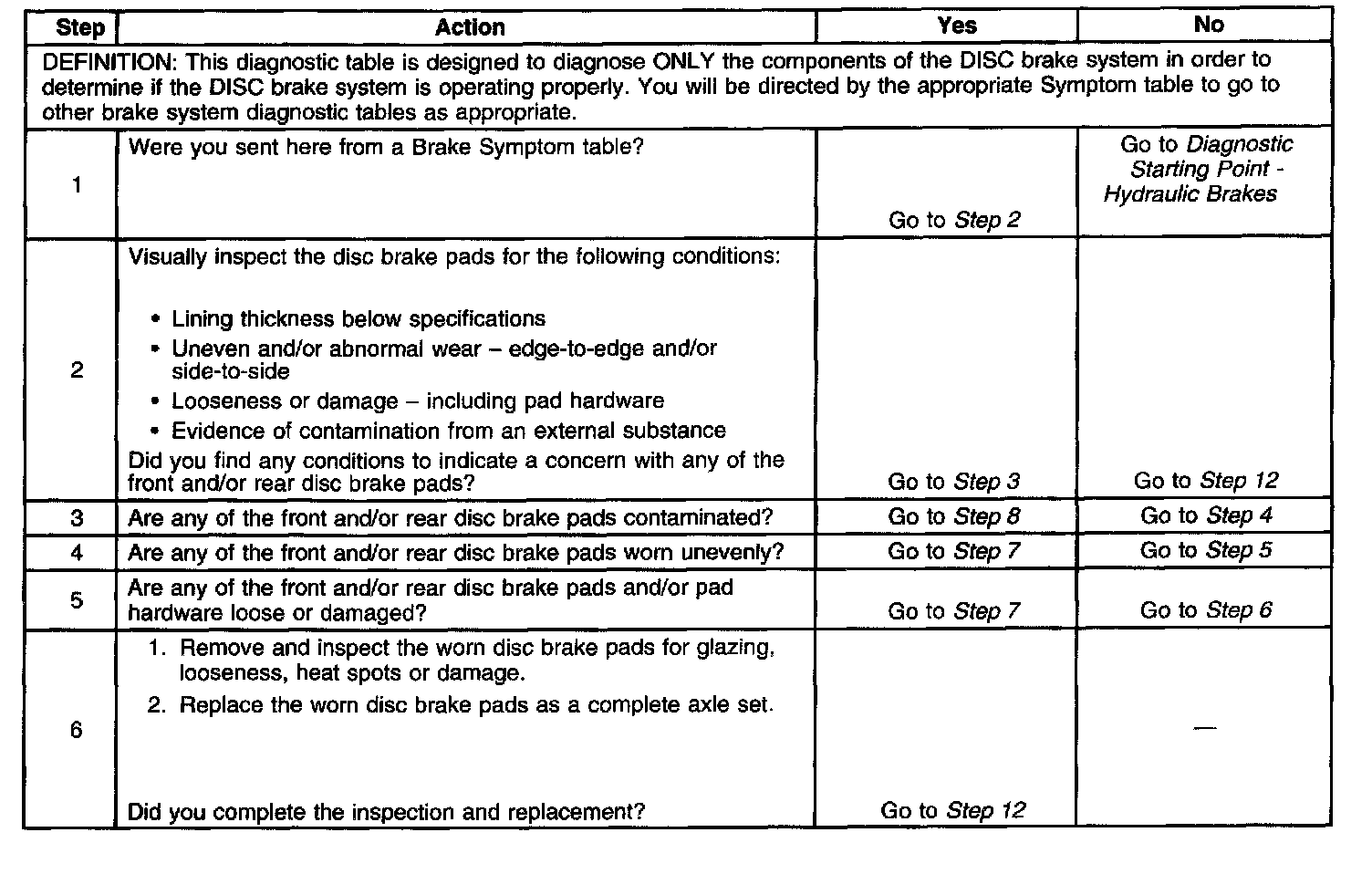 Disc Brake System DiagnosisSteps 1 Through 6: