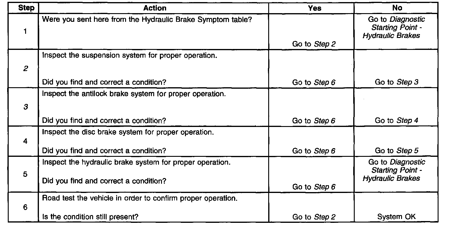 2. Suspension components that are not operating properly may cause a disturbance to the vehicle during application of the brake system.