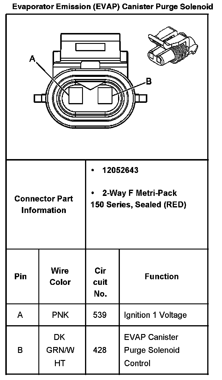 Evaporator Emission (EVAP) Canister Purge Solenoid: