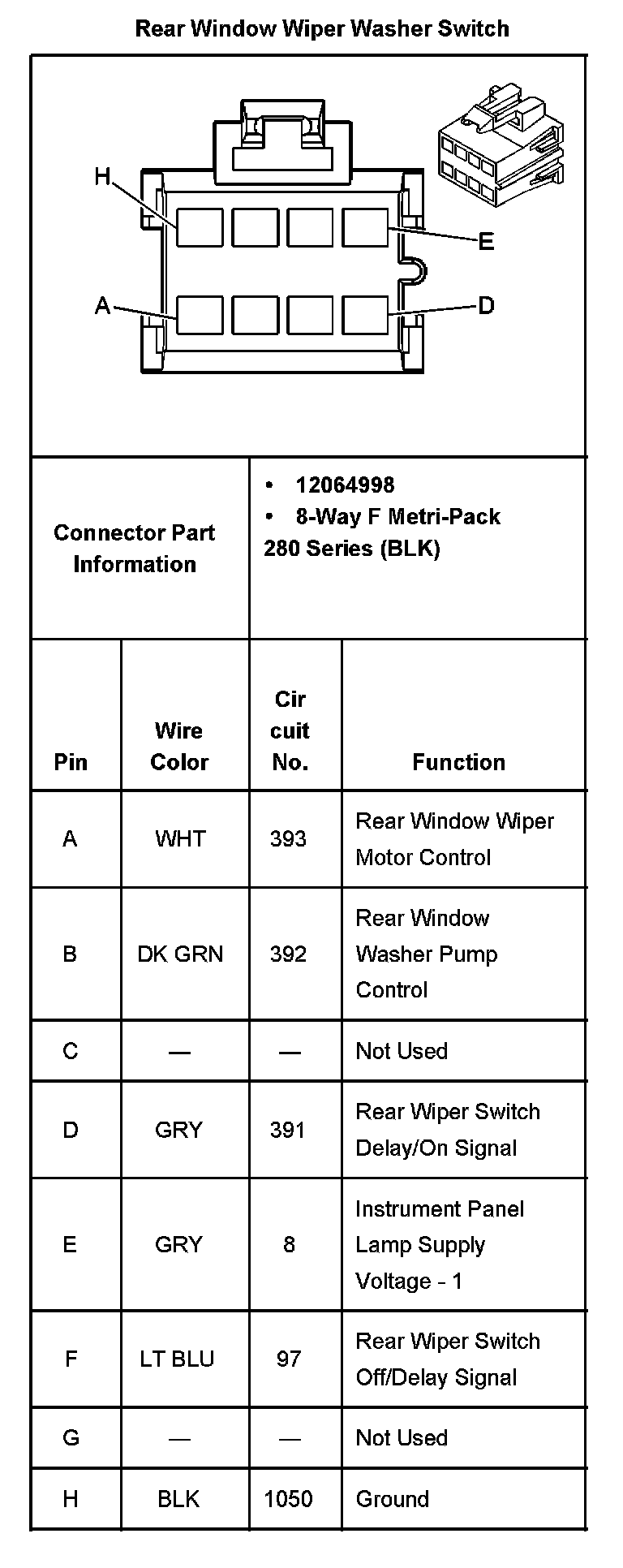 Rear Window Wiper Washer Switch: