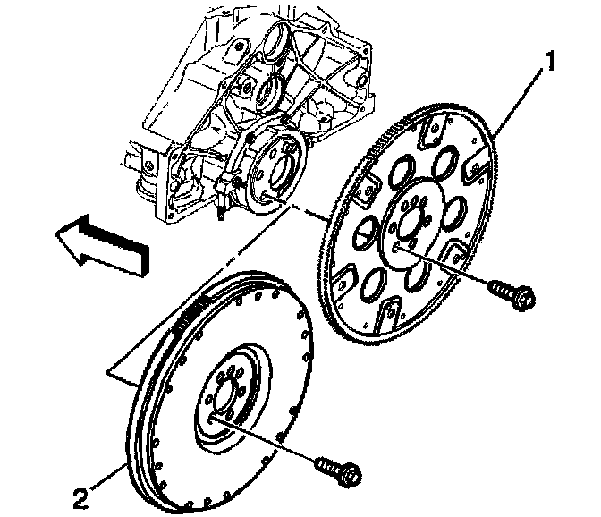 1. Clean the engine flywheel (1 or 2) in cleaning solvent.