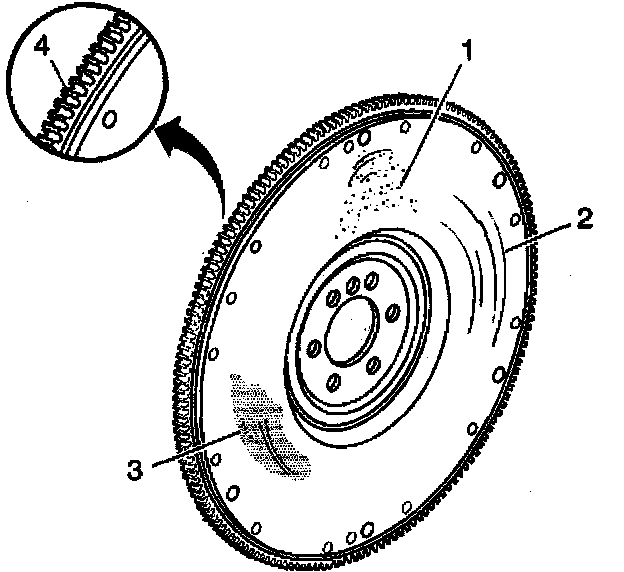 Engine Flywheel Cleaning and InspectionCaution: Refer to Safety Glasses Caution in Service Precautions.