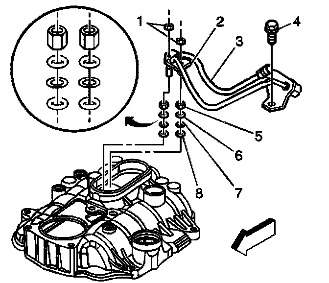 21. If reusing the fastener, apply threadlock GM P/N 12345382 (Canadian P/N 10953489) or equivalent, to the threads of the fuel pipe bolt.