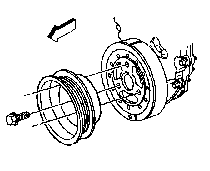 7. Install the crankshaft pulley and bolts.