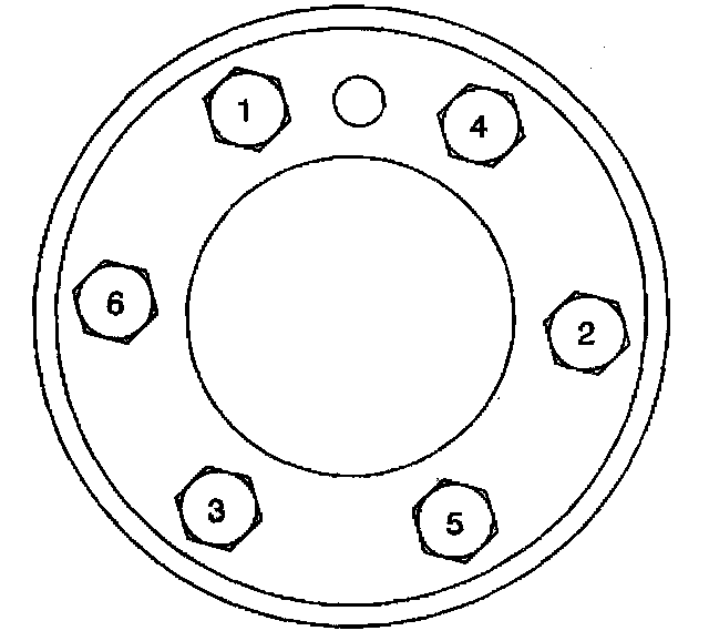^ Tighten the engine flywheel bolts in sequence to 100 Nm( 74 ft. lbs.).