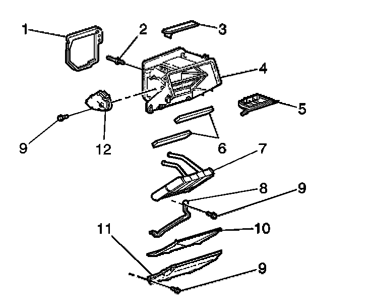 8. Remove the heater core (7) from the vehicle.
