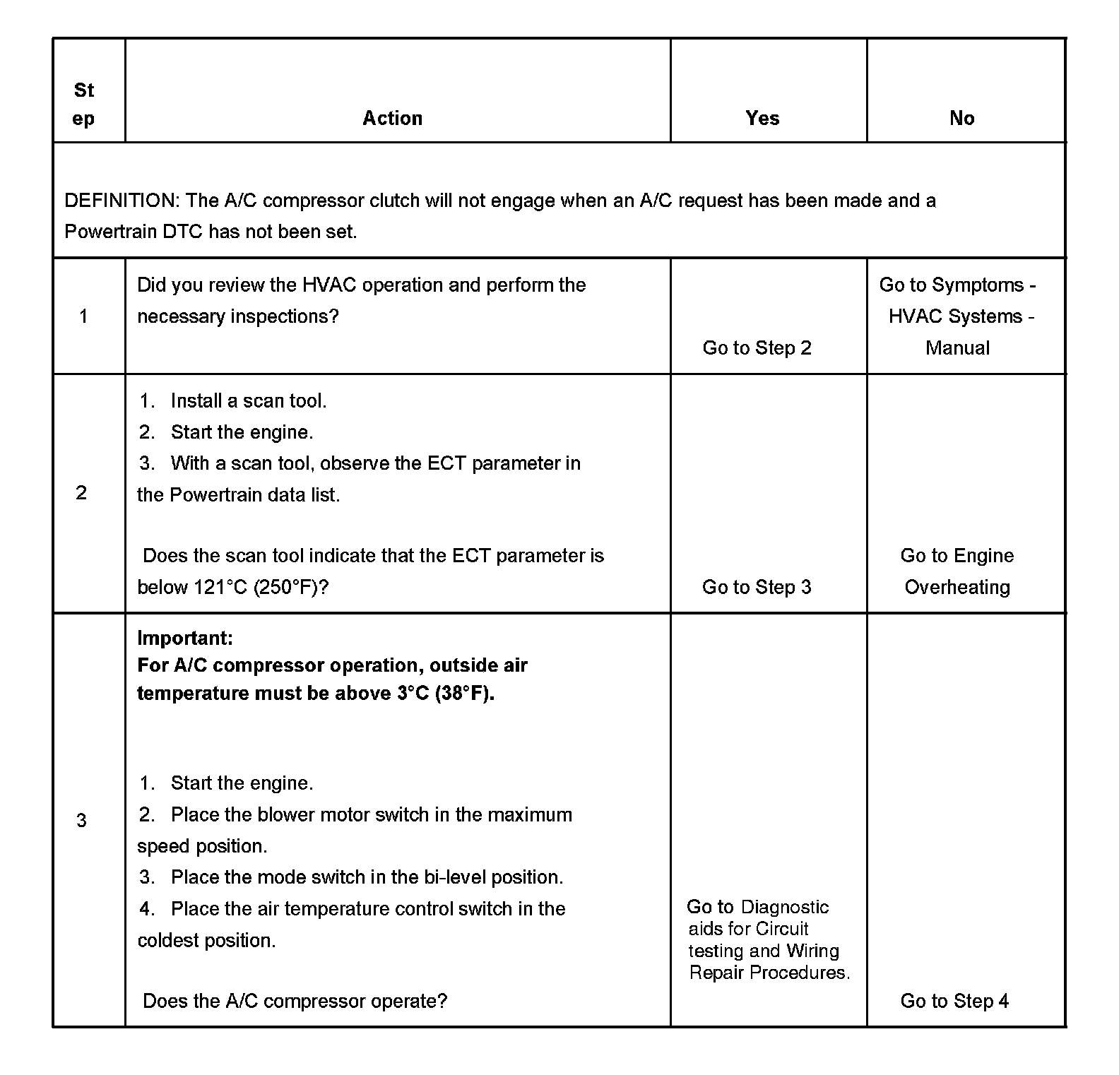2. The A/C compressor relay output is disabled if engine coolant temperature is above 121°C (250°F).