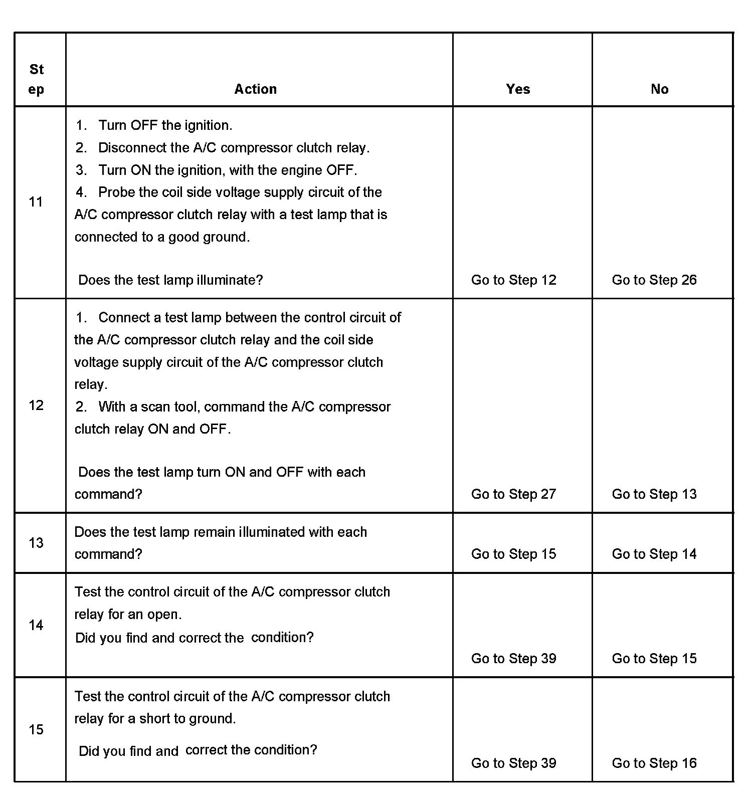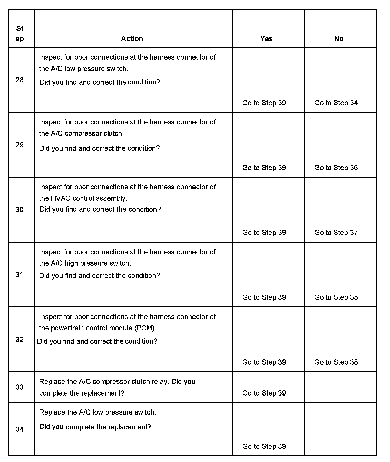 The numbers below refer to the step numbers on the diagnostic table.