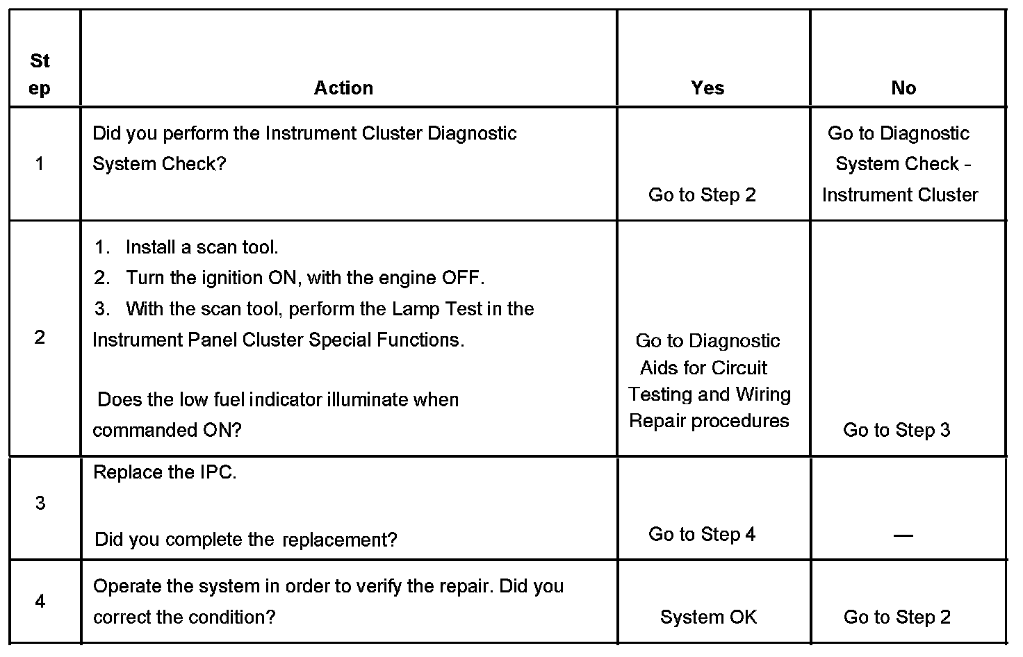 Low Fuel Indicator Inoperative