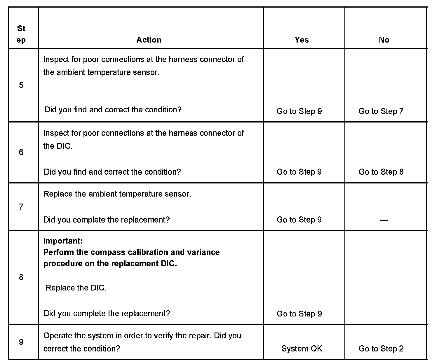 - An inaccurate DIC temperature display indicates a high resistance condition within the system.