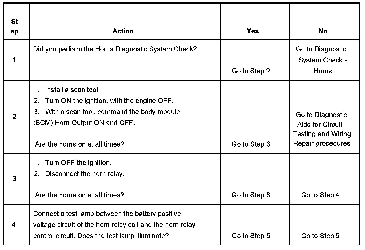 4. Tests if ground is constantly being applied to the horn relay.