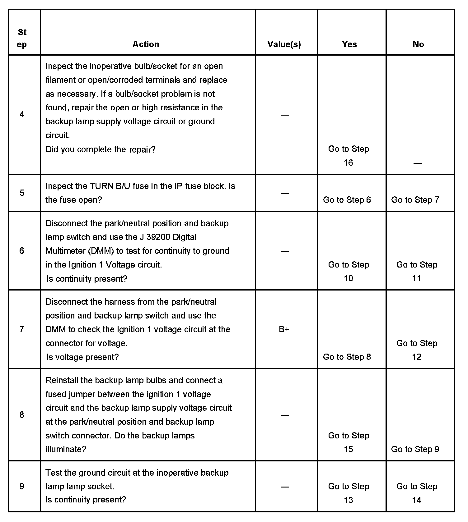 Backup Lamps Inoperative