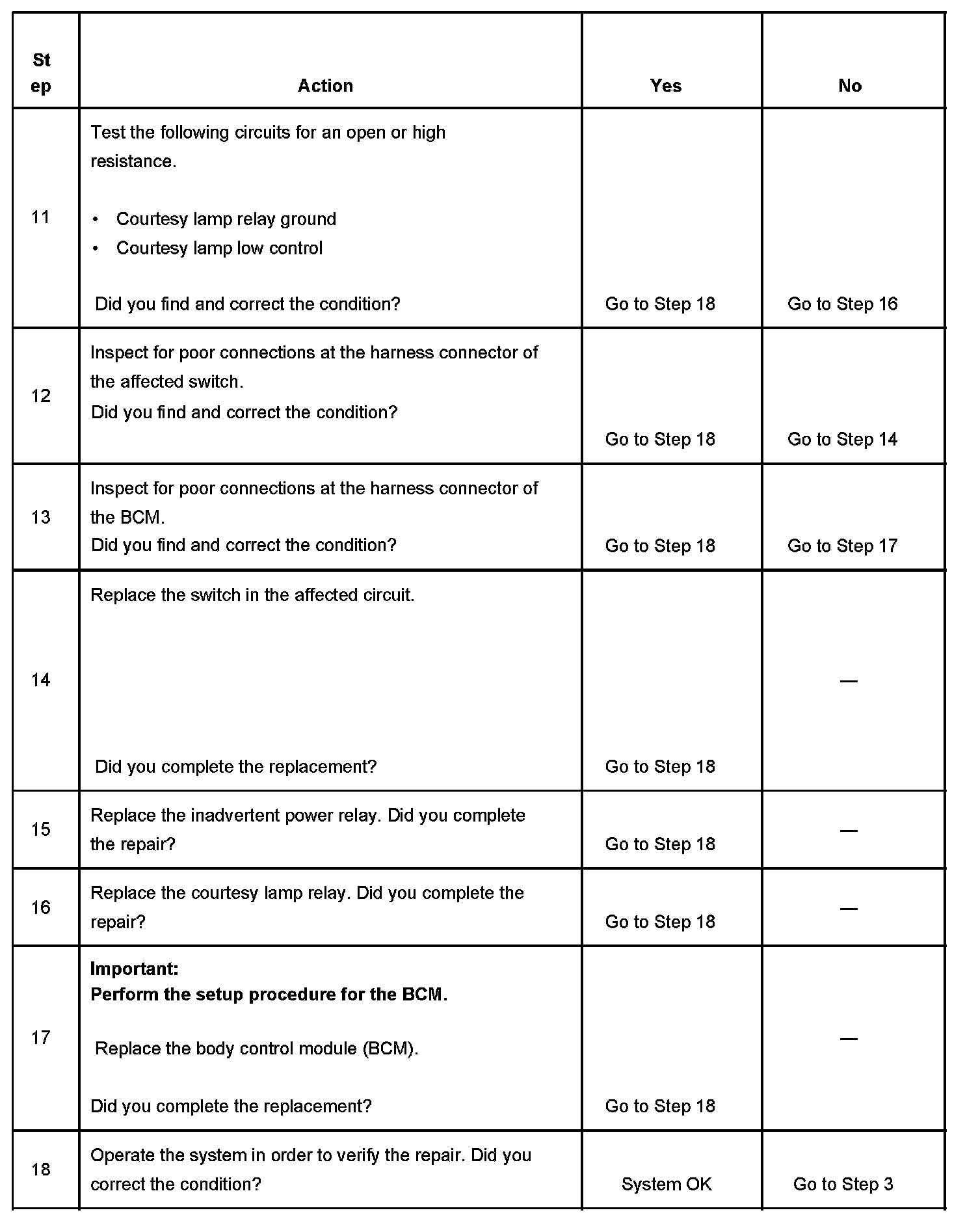 Courtesy Lamps Inoperative