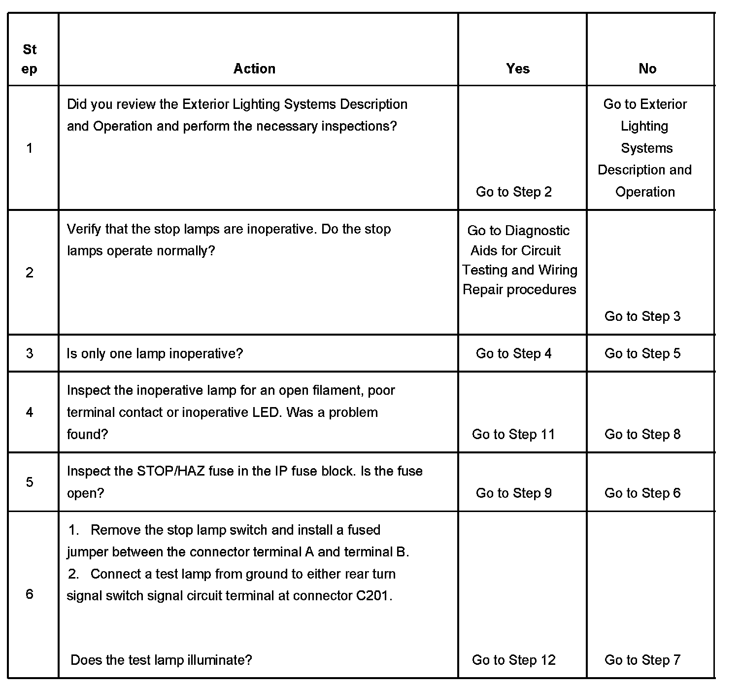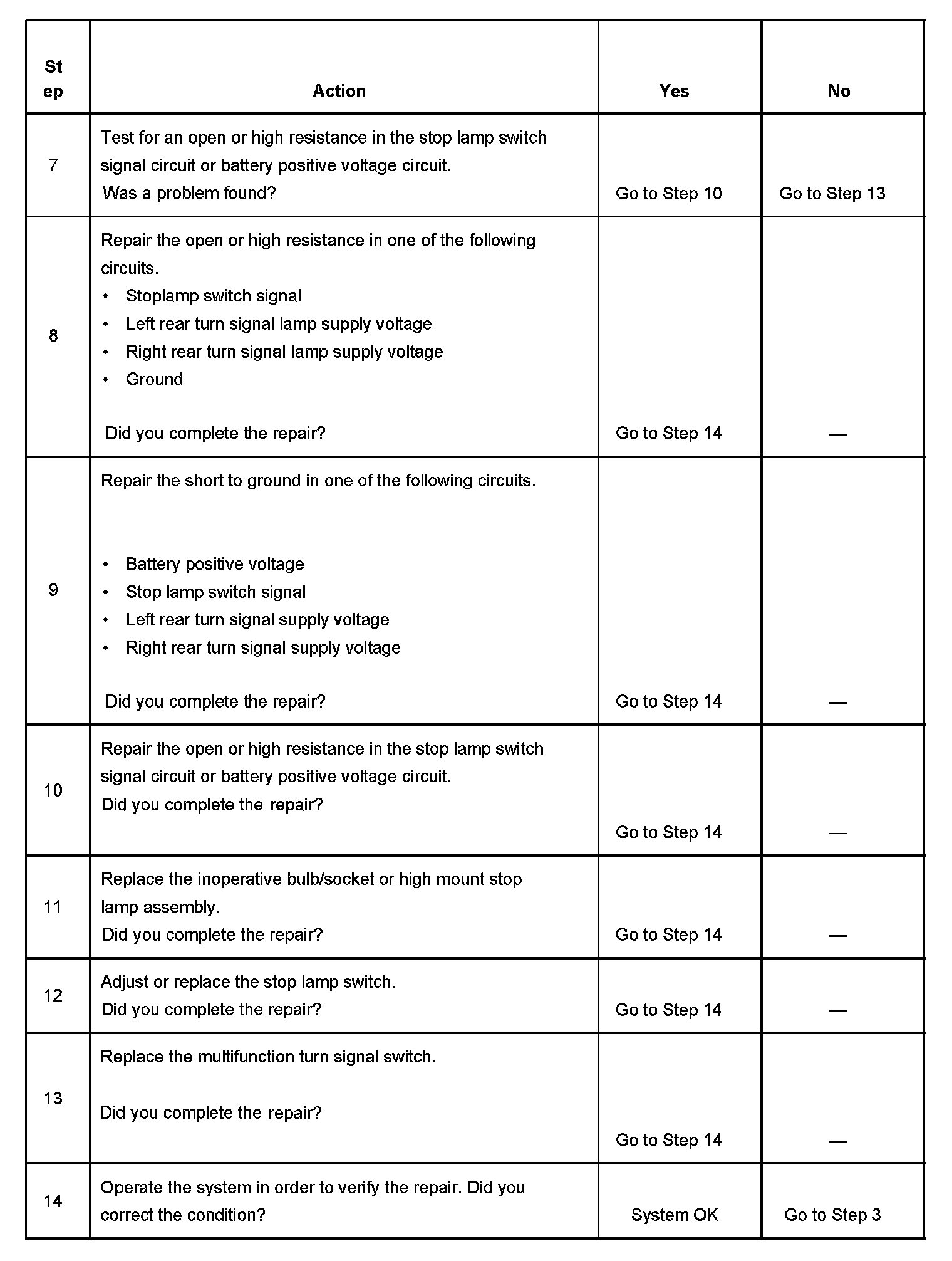 Stop Lamps Inoperative