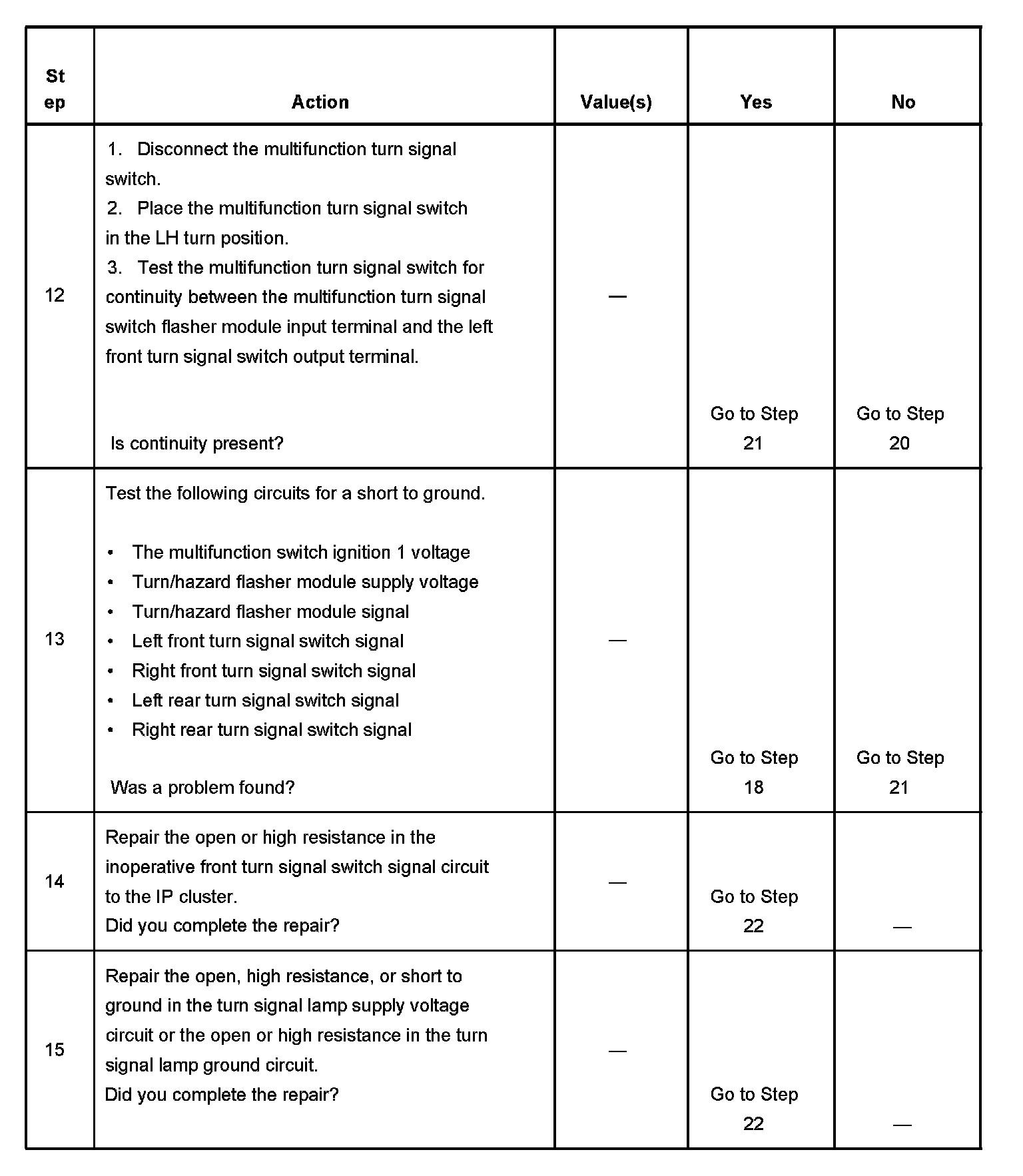 Turn Signal Lamps and/or Indicators Inoperative