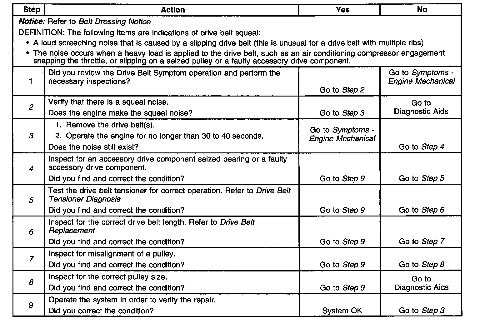 Drive Belt Squeal DiagnosisSteps 1-9: