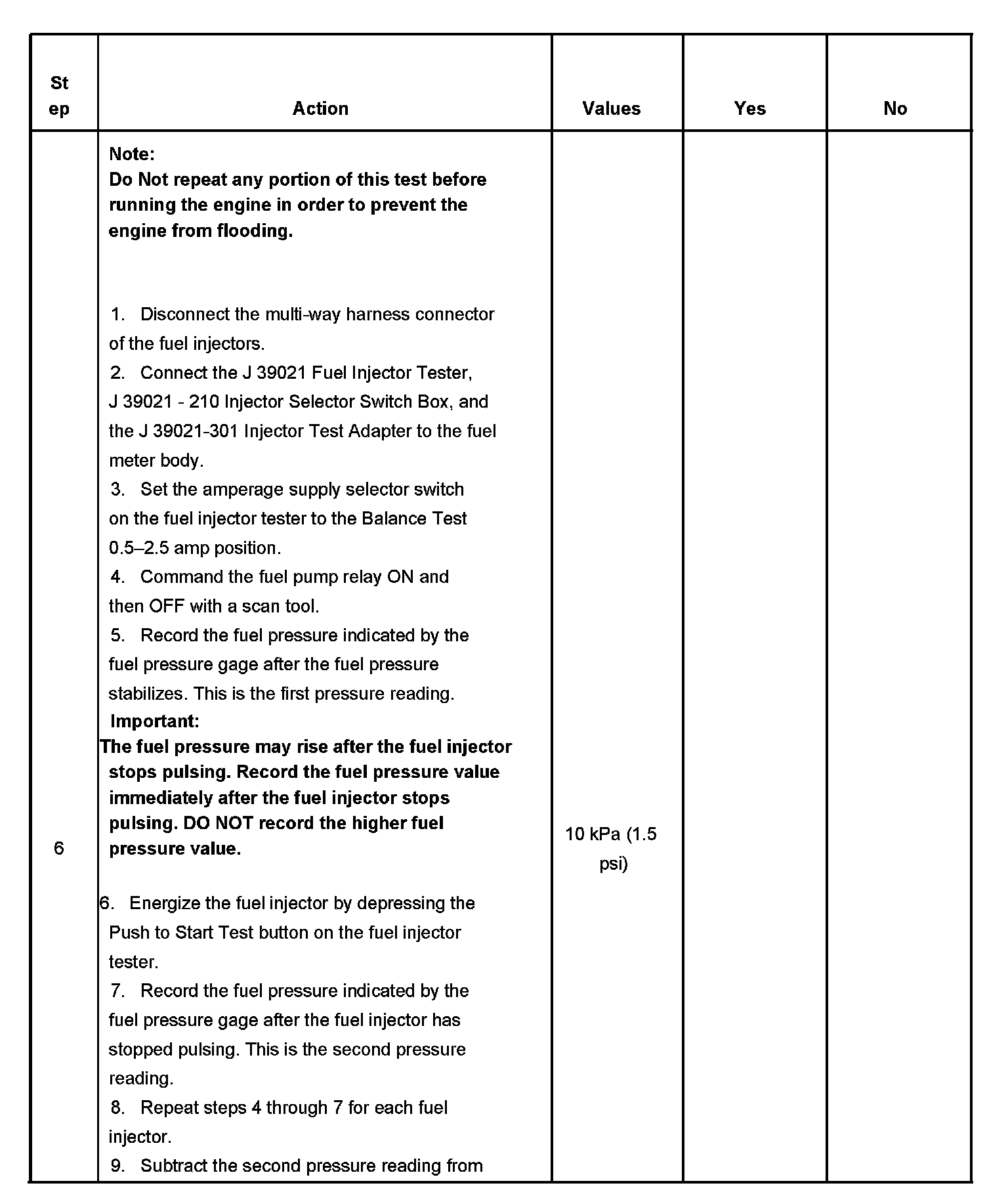 Fuel Injector Balance Test Example (Typical):