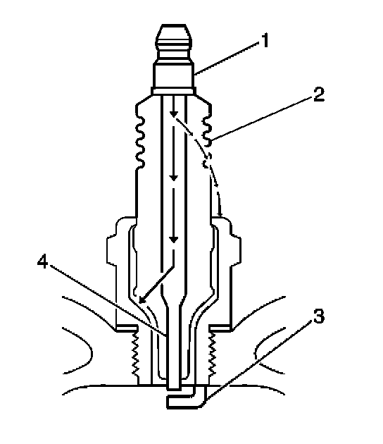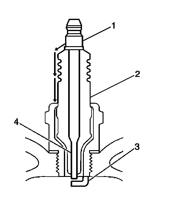 - Inspect for the correct spark plug torque. Refer to Ignition System Specifications. Insufficient torque can prevent correct spark plug operation. An over torqued spark plug, causes the insulator (2) to crack.