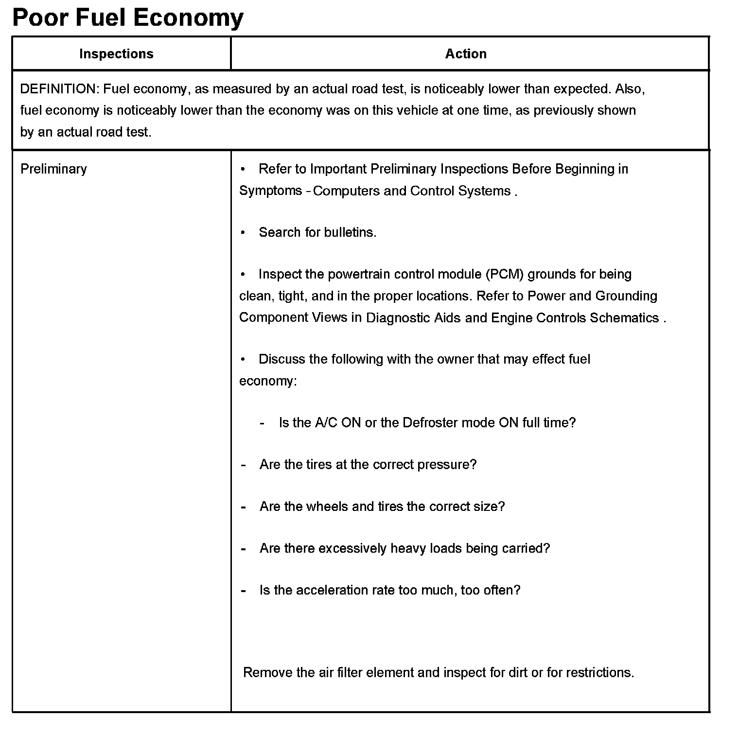 Poor Fuel Economy