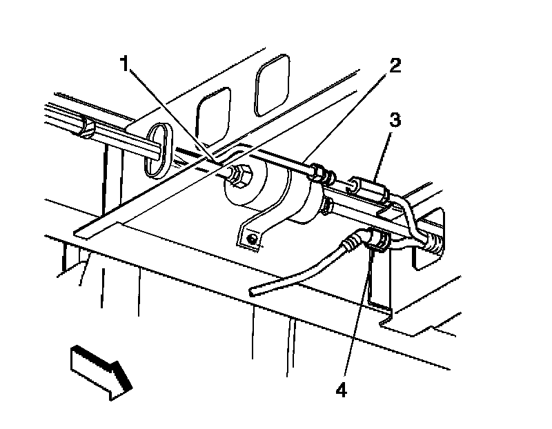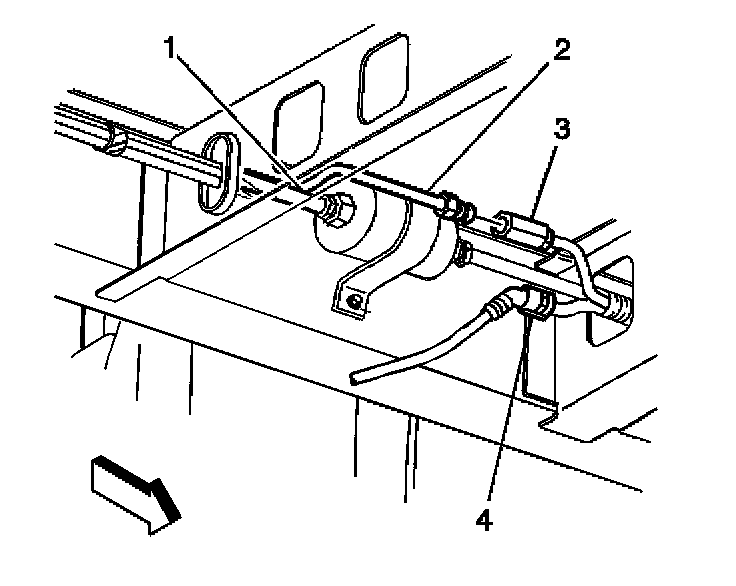 9. Release the fuel pipe grommet (4) from the crossrail.