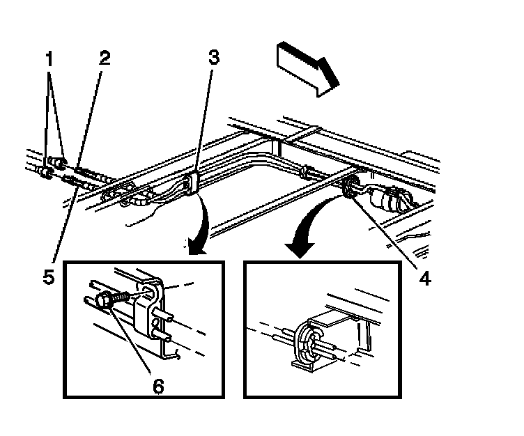 2. Disconnect the front fuel pipes (3) from the rear chassis pipes (1).