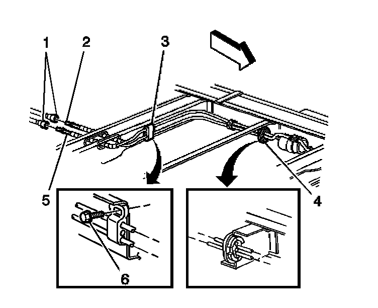6. Disconnect the fuel tank pipes (1) from the fuel feed (2) and fuel return (5) pipes.