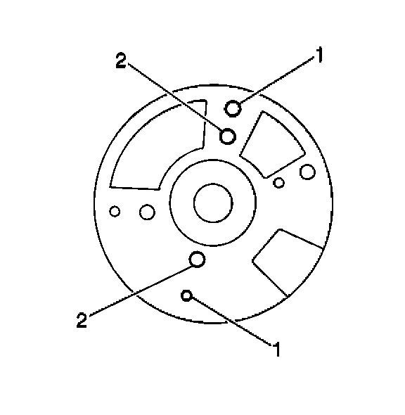 11. Align the rotor segment as shown for a V6 engine (1) or V8 engine (2).