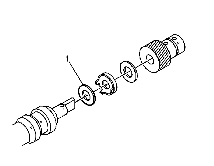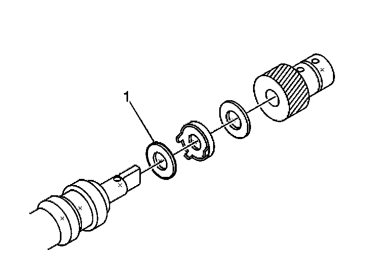 7. Install the shim washer (1) on the bottom of the distributor shaft.