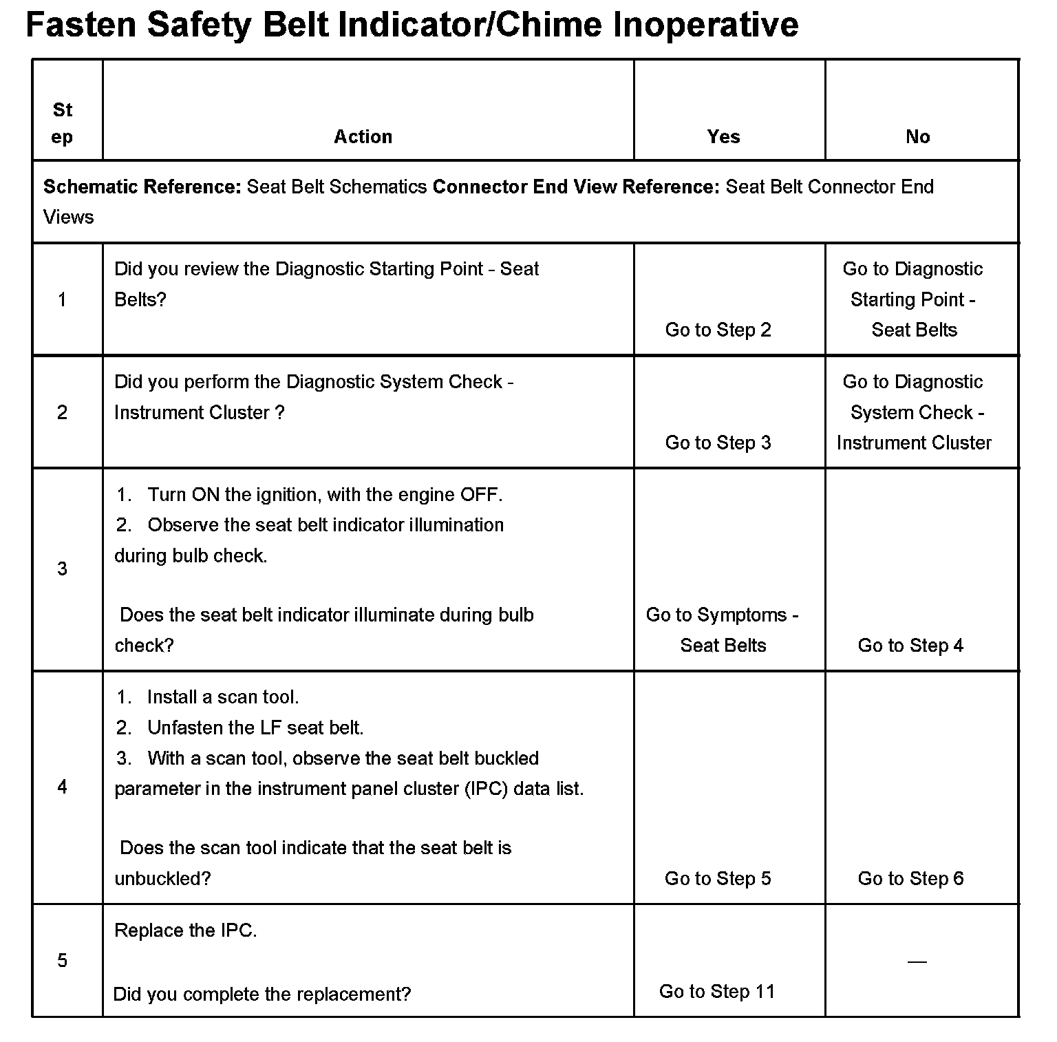 Fasten Safety Belt Indicator/Chime Inoperative