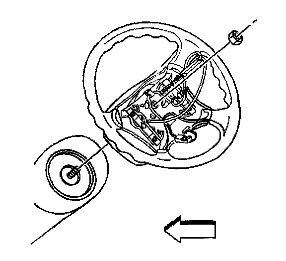 3. Remove the horn plunger from the steering column by pressing inward to the stop and rotation the horn plunger 90 degrees.