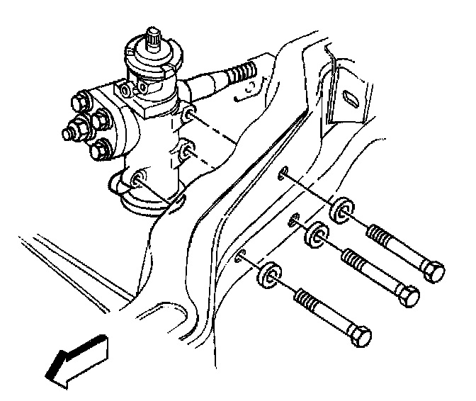 4. Using the aid of an assistant, position the power steering gear to the frame and install the power steering mounting bolts.