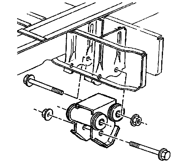 6. Remove the leaf spring to hanger mounting bolt and nut (left side only).