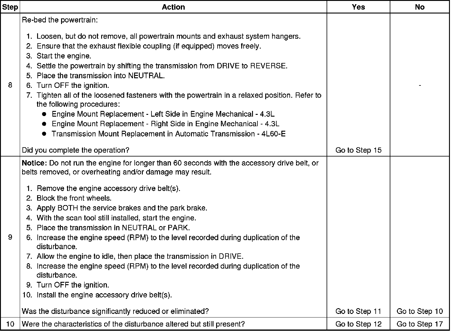 When loosening powertrain mounts in order to re-bed the powertrain observe the following:
