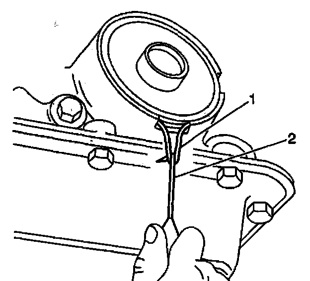 9. Remove the servo cover and 9-ring seal. If the cover is hung up on the seal, use a pick (2) to pull and stretch the seal (1) out of the groove. Cut and remove the O-ring seal before removing the cover.