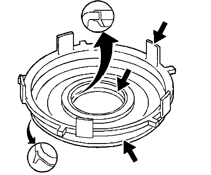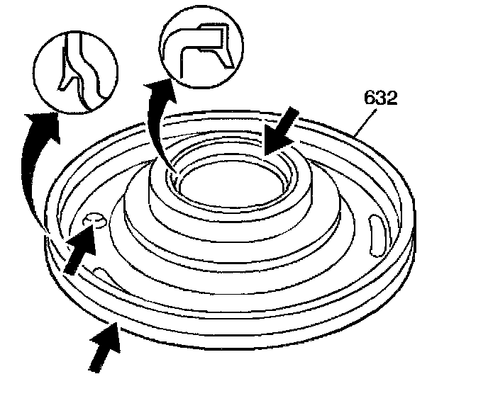 ^ Hold the assembly by the 3rd and 4th clutch apply ring (625) legs during installation.