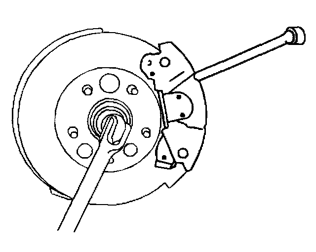 4. Insert a drift through the brake caliper and into a brake rotor vane to prevent the wheel drive shaft from turning.