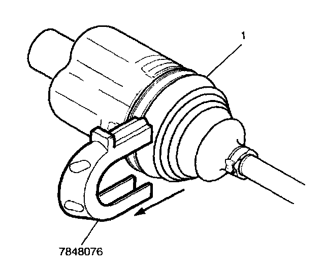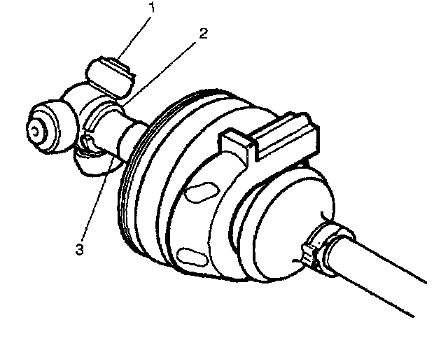 7. Slide the tripot boot up the halfshaft bar (1), away from the tripot spider assembly toward the outboard (CV joint assembly) end of the halfshaft bar.