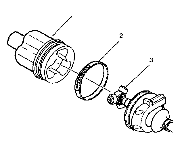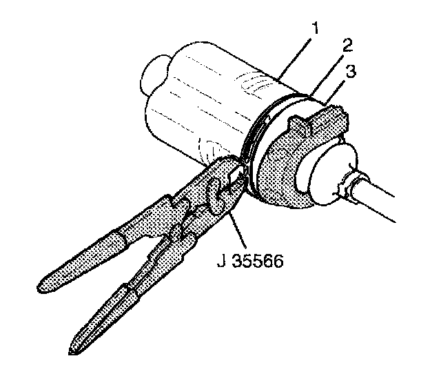 14. Secure the large retaining clamp (2) and the boot (3) to the housing (1) using J 35566.