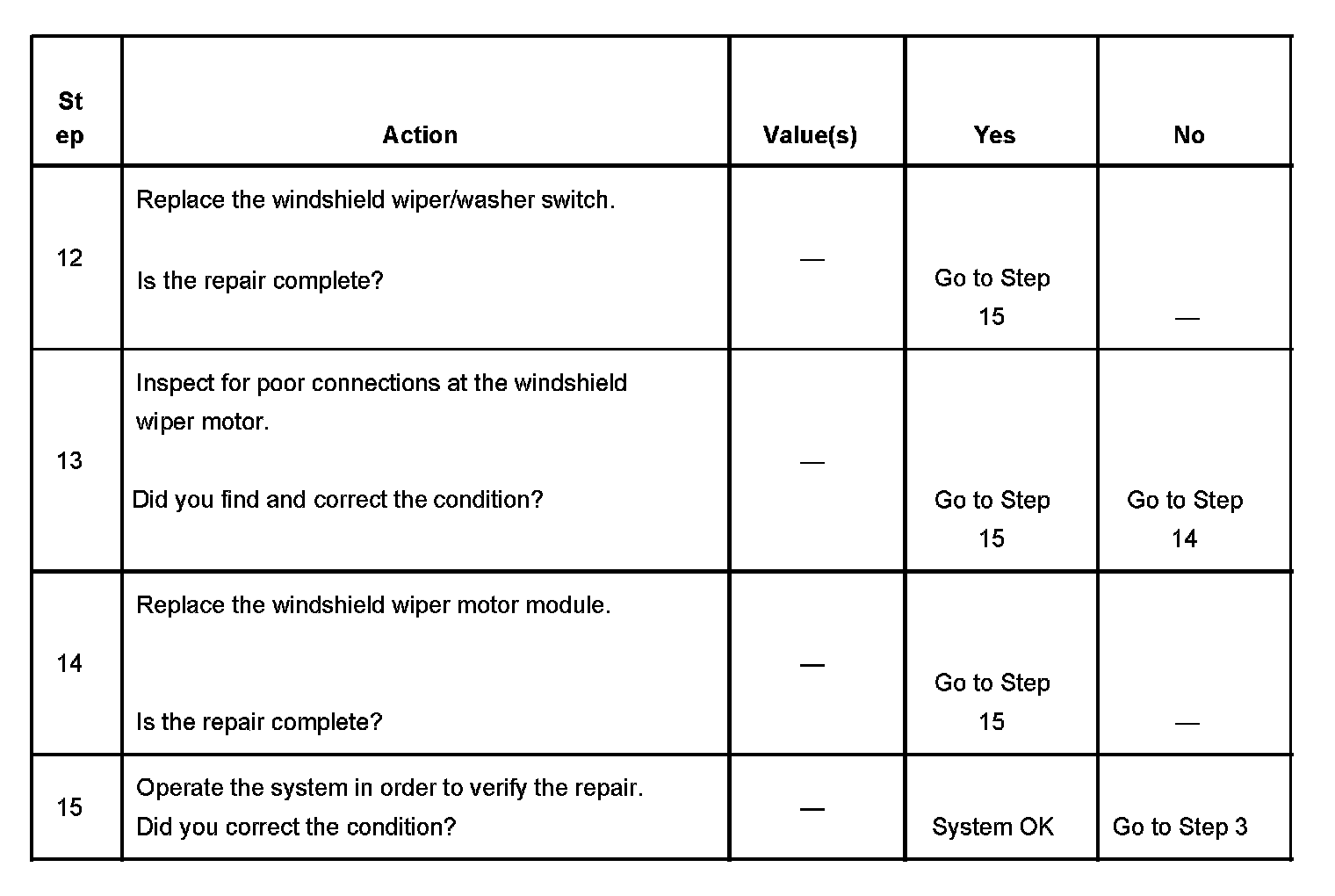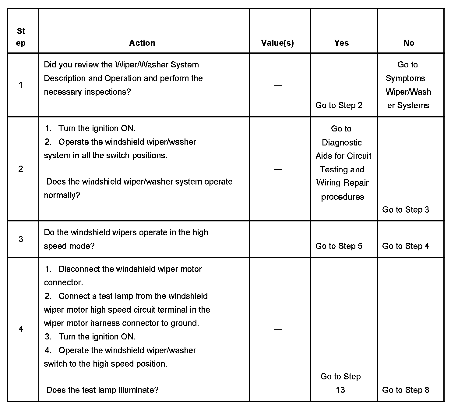 The numbers below refer to the step numbers on the diagnostic table.
