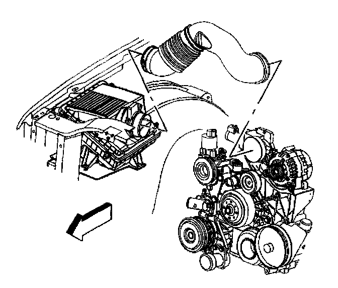 Important: Align the arrow at the throttle body end of the duct with the throttle body attaching stud.